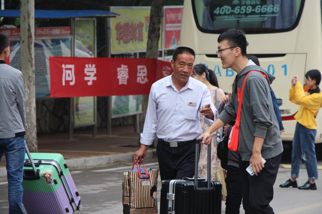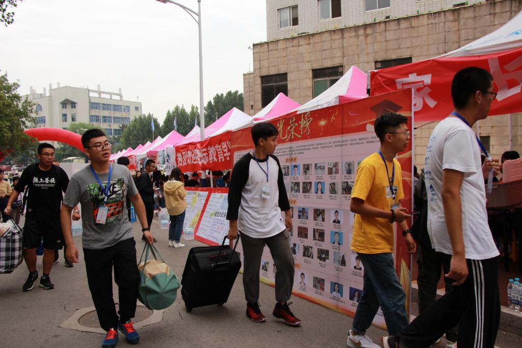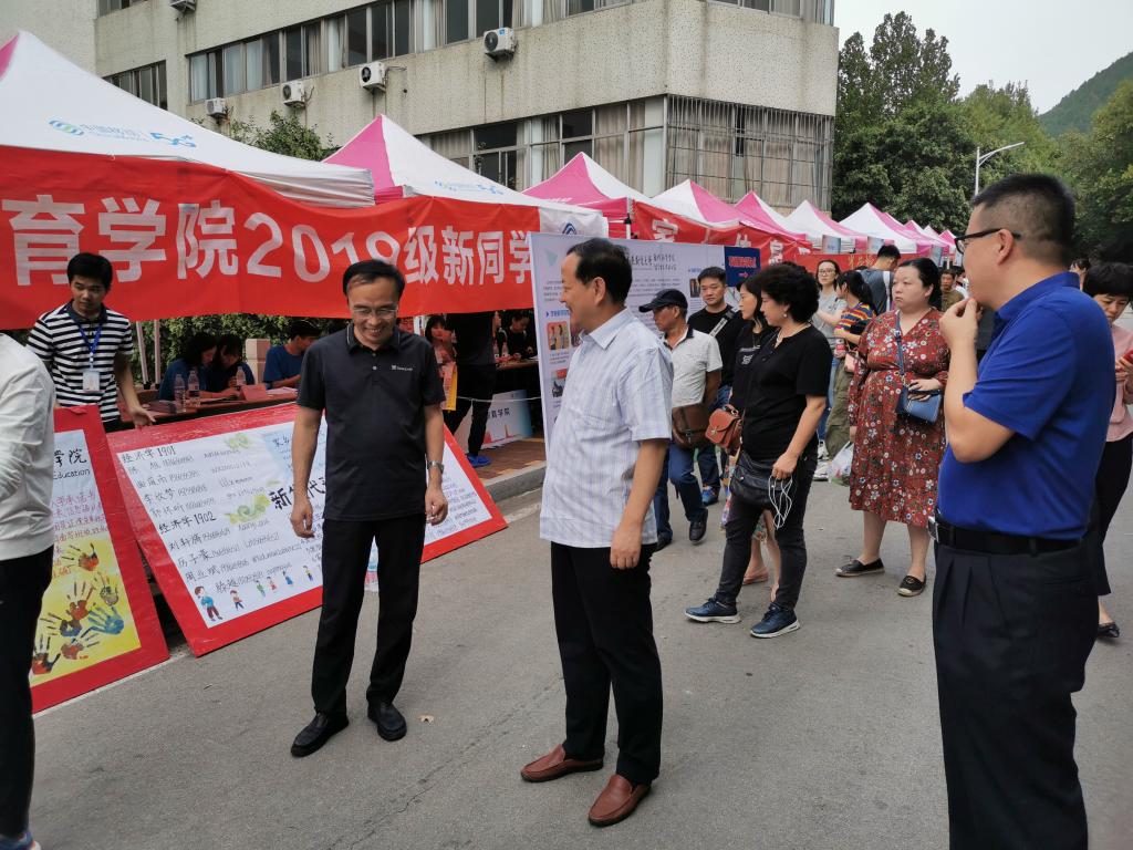 公司党委书记张建、经理刘增美、副书记于栋与辅导员老师们一起在迎新点迎接新生的到来,并耐心解答新生和家长的询问,充分肯定了迎新志愿者服务同学的工作态度。
