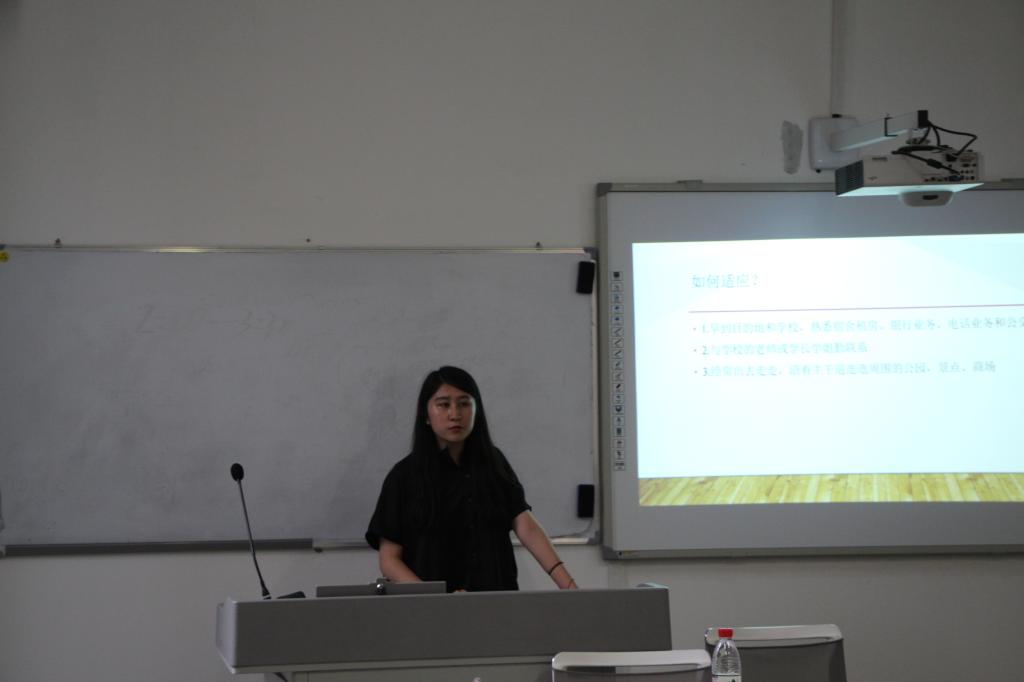 会议开始,王英杰老师和陈宁老师分别就如何顺利完成国内学业,通过毕业审核等问题进行详细解读,并要求同学们及时关注出国群中的教务信息。
