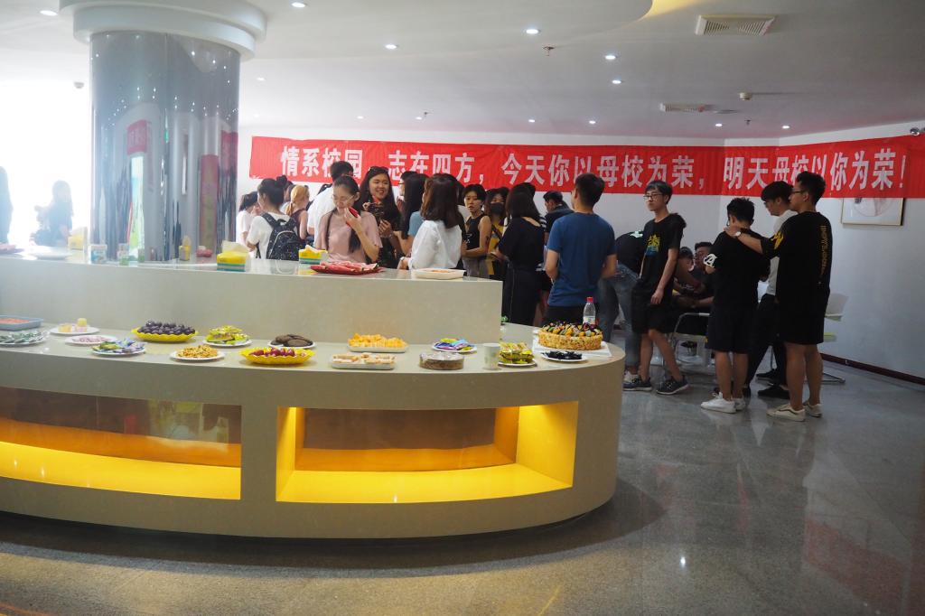 仪式结束后同学们依次排队领取毕业证、学位证,高兴地品尝水果甜点,大家一边享用一边交谈,与老师合影留念,畅谈未来规划,气氛热烈而欢快。