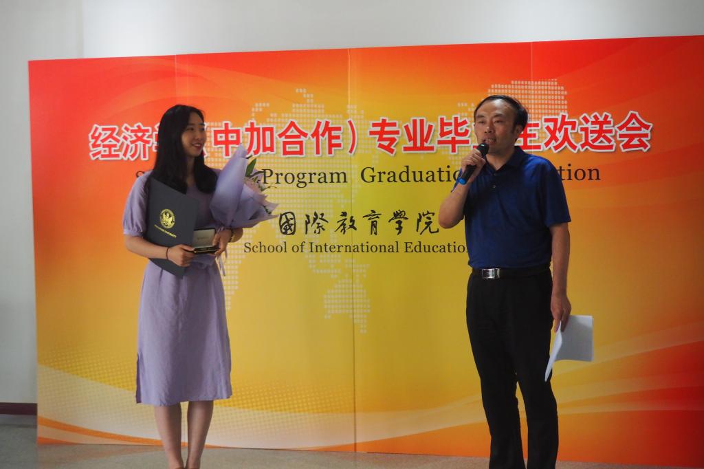 经理刘增美在致辞中对2018届中加项目毕业生们取得的成绩表示祝贺,通报了学院2018届毕业生考研及就业情况。学院今年考研率高达33.96%,尤其是中加项目经济学毕业生考研率高达49.5%,在全校均名列前茅,充分表明了两个项目及汉语国际教育专业的培养质量。她祝愿同学们在新的岗位上不懈努力、再创佳绩。
