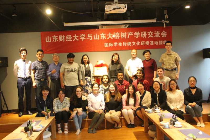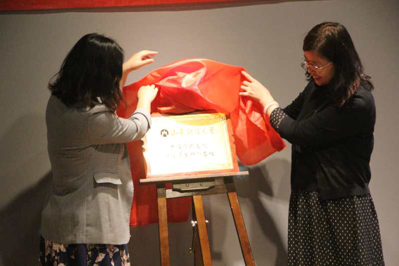 何琪详细介绍大榕树美学馆开办的中国传统文化课程情况,并致力于将公司打造成集陶艺、茶艺、插花、书法、合香于一体全新教育平台的理念和创业经过。她表示自己作为员工,对于能够回馈母校感到自豪。刘长超则是从媒体人的角度谈及国际员工研习中国传统文化的重要性。来自蒙古国的宝乐日,作为国际员工代表发言。她对山财大给予员工们的培养和帮助表示感谢,使她们在汉语水平、接人待物等方面都得到很大的提升。最后,出席仪式的嘉宾一起剪彩,并由刘增美和何琪进行揭牌。