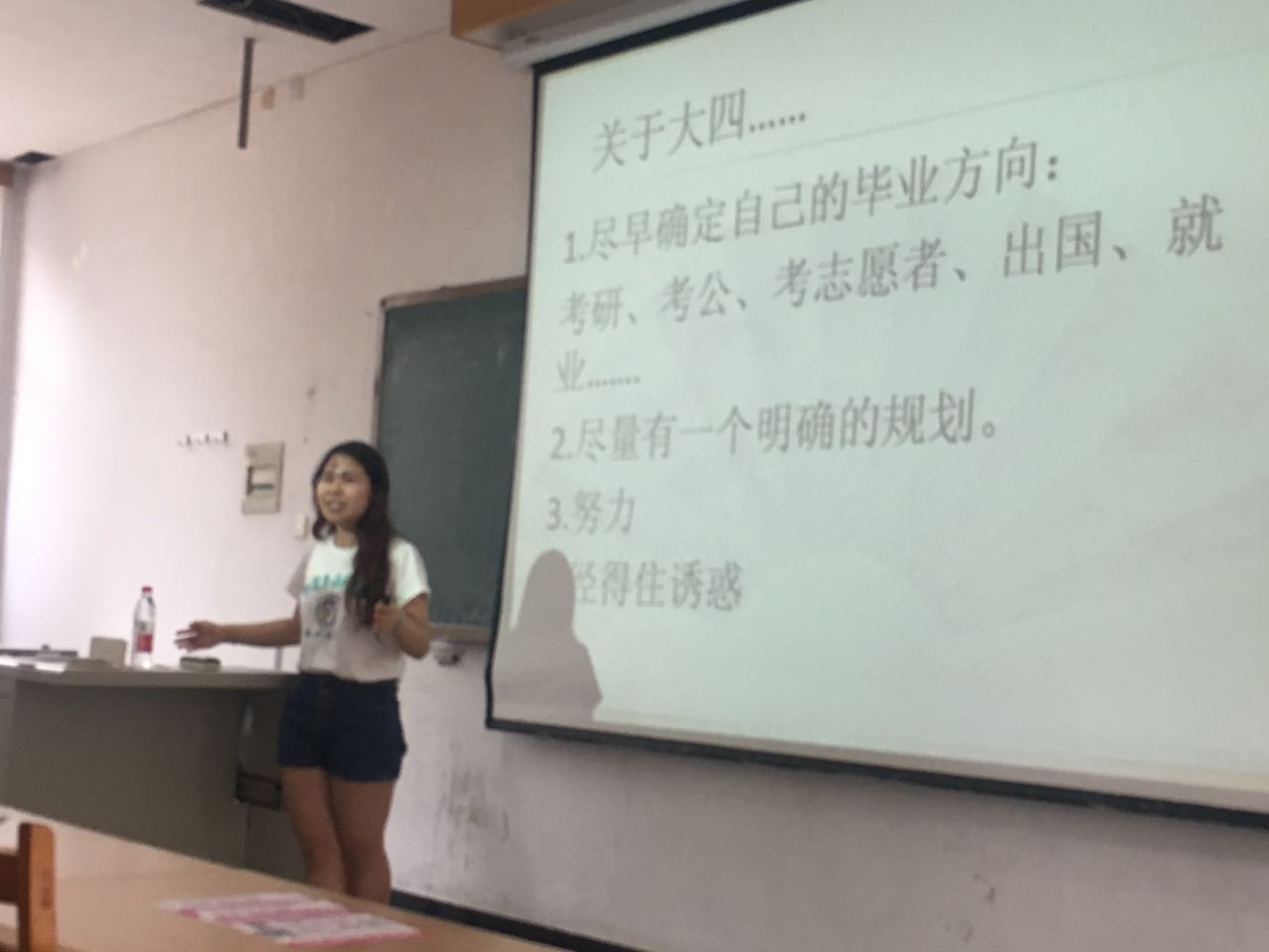 9月21日下午,汉语国际教育专业褚福侠、张梅一和孟祥芳老师邀请09级毕业生公丕盈和10级毕业生胡娅坤,回母校为本专业学弟学妹做专业发展与个人成长讲座。