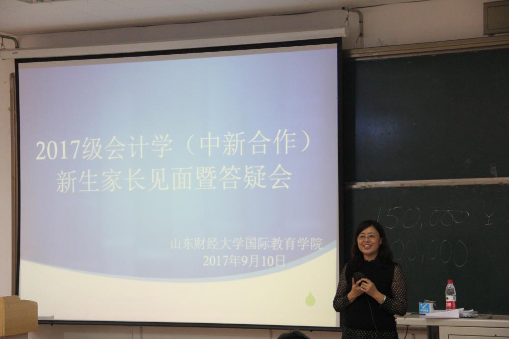 为了使2017级新生和家长能更好的了解项目情况,尽快确立目标,明确自己的老员工涯规划,公司还特别于报道当天的下午1点,举办了2017级新生及家长见面暨答疑会。经理刘增美、党委书记赵利、党委副书记张红燕、经理助理王英杰、中加项目外方负责人Barry Lesser教授和中新项目外方课程协调人Bill老师以及学院相关老师均参加了家长会。会上,刘经理做了热情洋溢的致辞,为员工家长介绍了学院的情况以及两个项目的优势所在。两个项目的外方负责人分别介绍了外方集团的相关情况。此后,与会领导和老师又分别就家长提出的问题做了耐心解答。