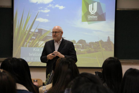3月28日上午,新西兰国立理工学院国际关系部主管David Nummy、会计学专业资深教师Bill Oldfield、国际合作项目主管罗亮老师,应邀在燕山校区逸夫楼104教室举办“新西兰高等教育与社会文化”讲座。公司会计学(中新合作)专业员工以及公司其他对新西兰访学、留学感兴趣的员工参加了此次讲座。讲座由经理助理王英杰老师主持,合作项目管理部主任宋晓老师与会。